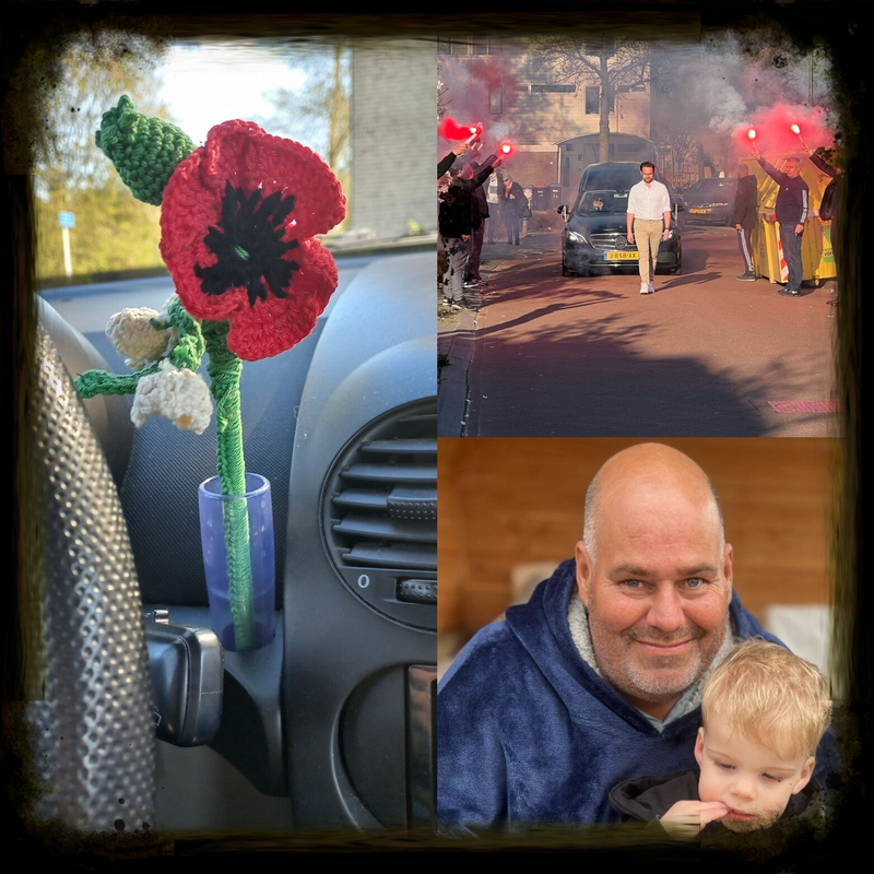 Dus met dit blogje ga ik weer een stap in de richting van creatiefvantalien maken. De foto, die ik hierbij plaats is het laatste wat ik gemaakt heb en het laatste wat Marcel bejubeld heeft. Het zijn de geboortebloemen van Robin en Lobke en zijn een geweldige aanvulling in hun auto. Een klaproos en lelietjesvandalen. En misschien wel de laatste foto die ik deel van mijn lieve lief op deze website want vanaf nu moet ik het echt alleen doen en volledig in mijzelf geloven. Al geloof ik oprecht dat ergens de energie van Marcel rond mij heen hangt en mijn creaties nog steeds bejubelt. En dat hij oprecht trots is hoe dit gezin een hechtere band heeft gekregen en hoe wij ons nieuwe pad bewandelen.
