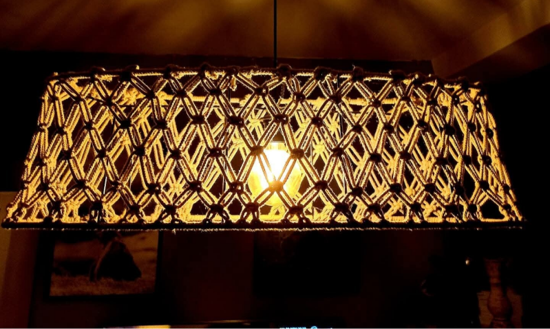 Ik vind het enorm leuk om van oude dingen iets nieuws te maken. Deze lamp heb ik zelf thuis hangen en is een oude lamp met een nieuw jasje.